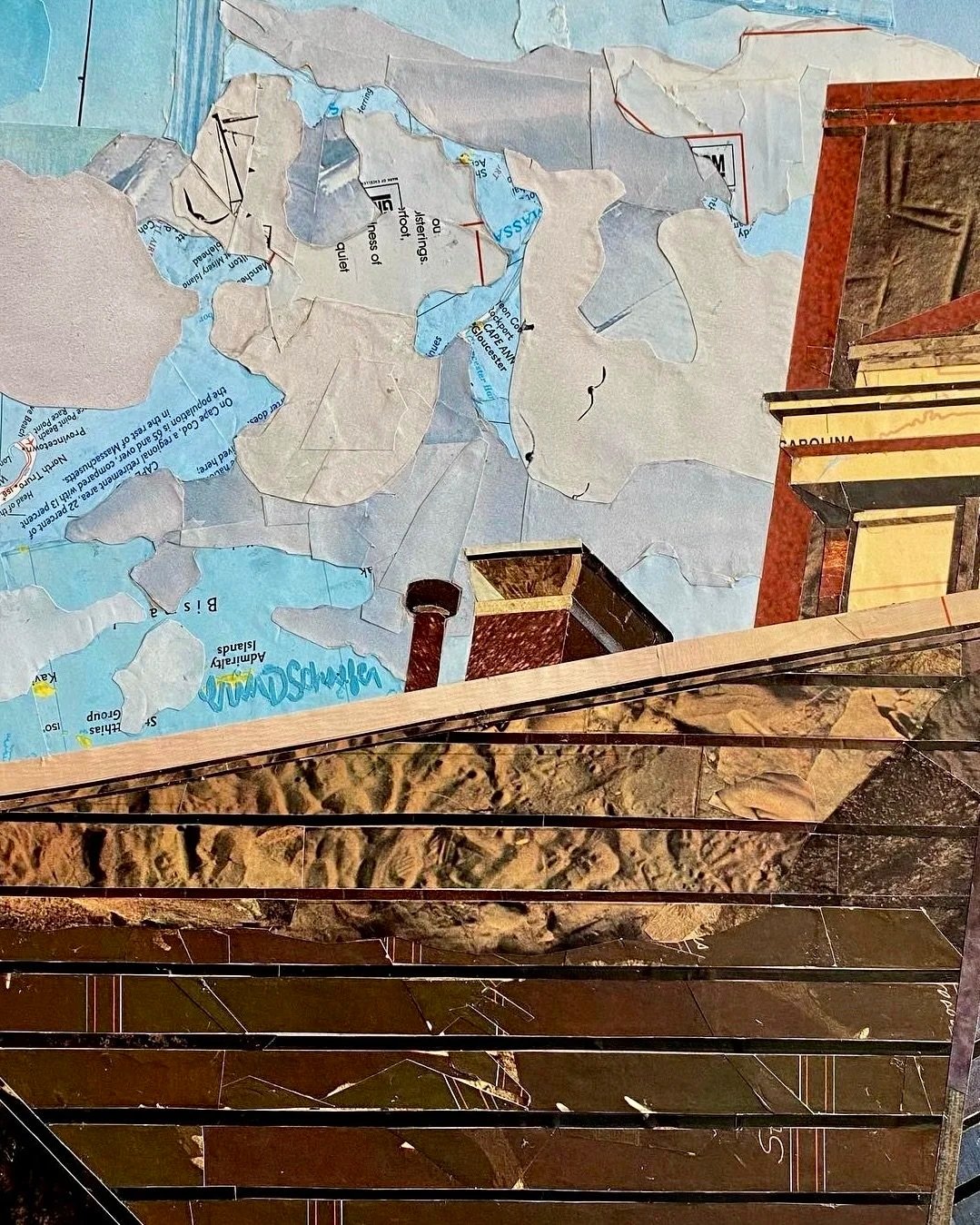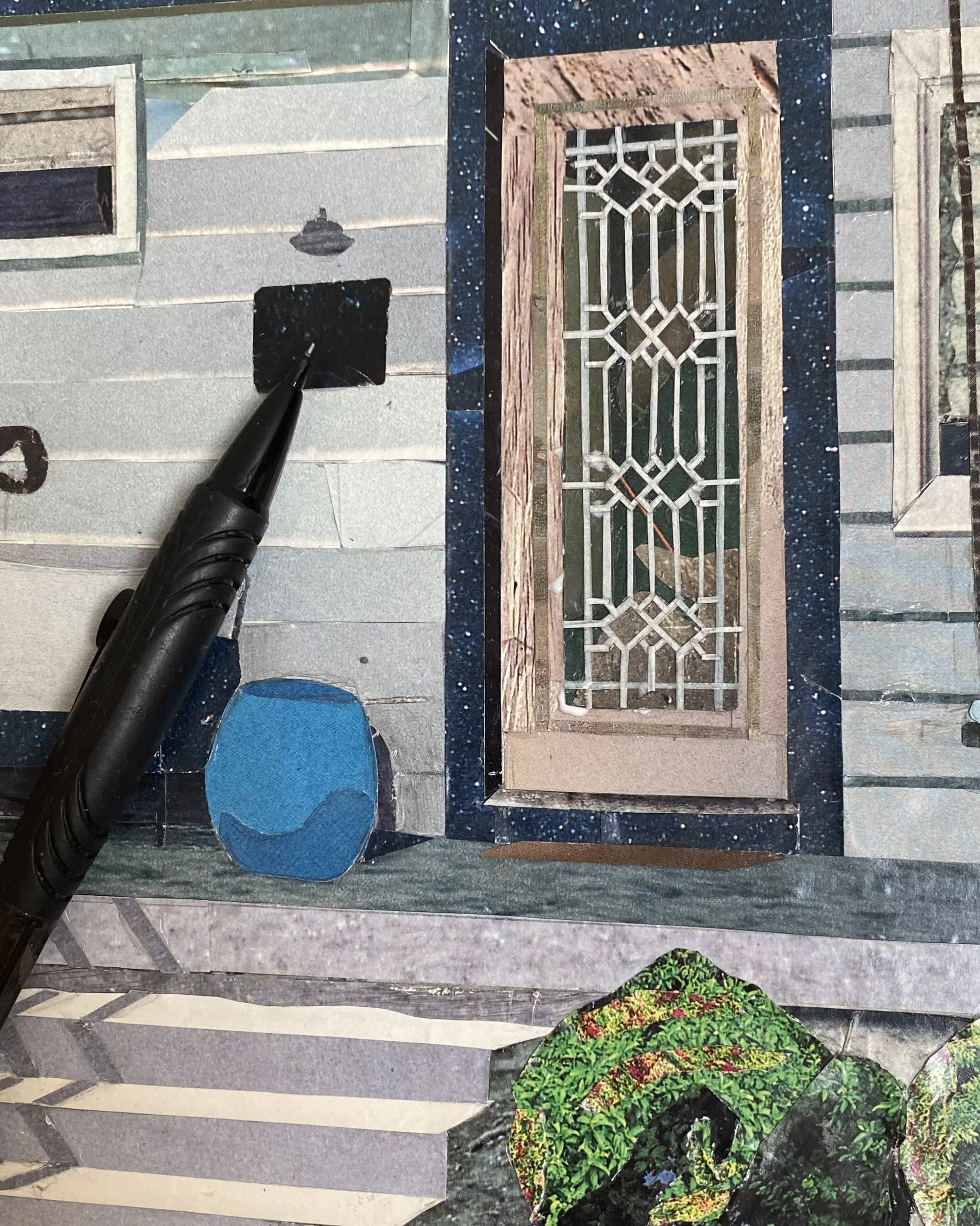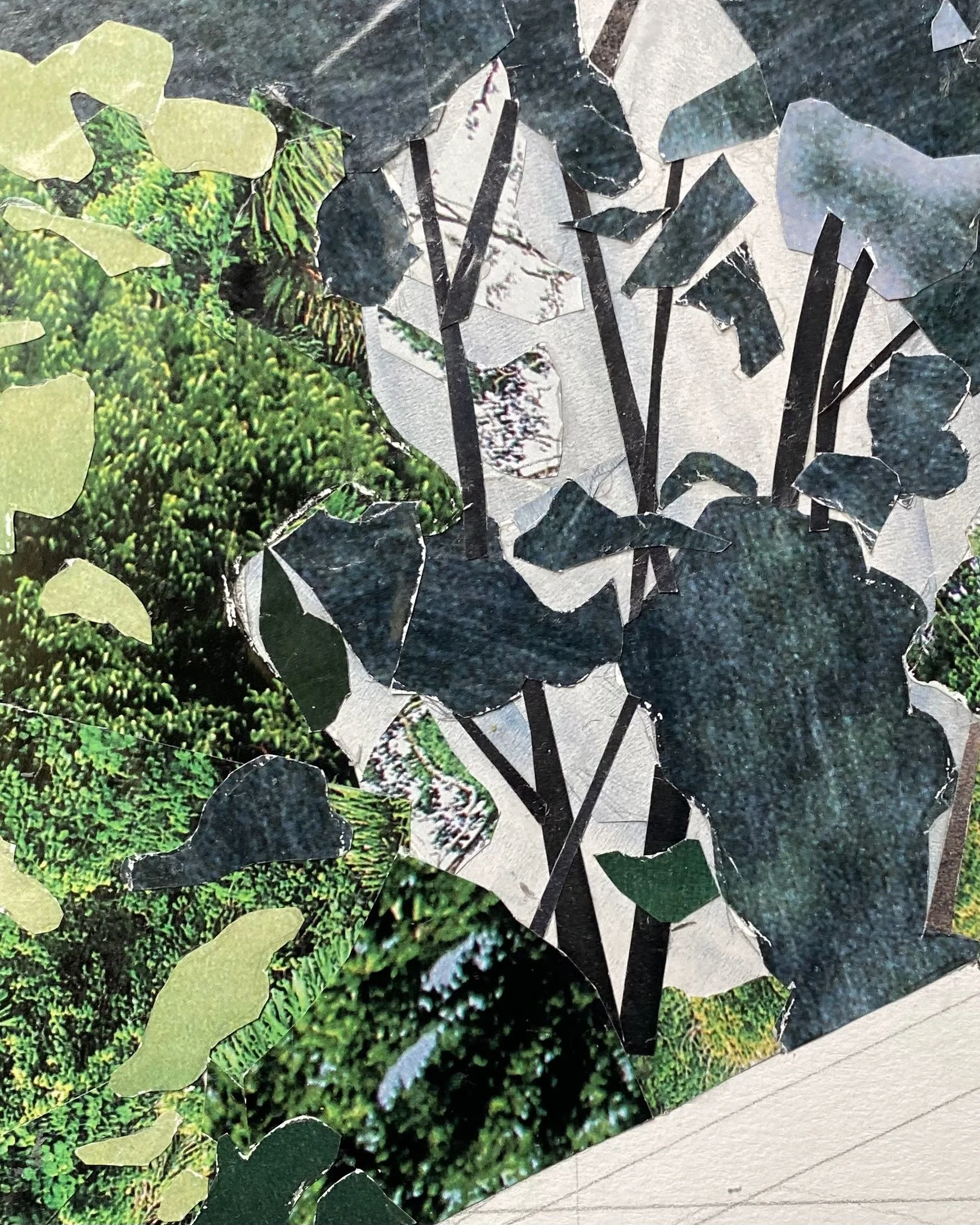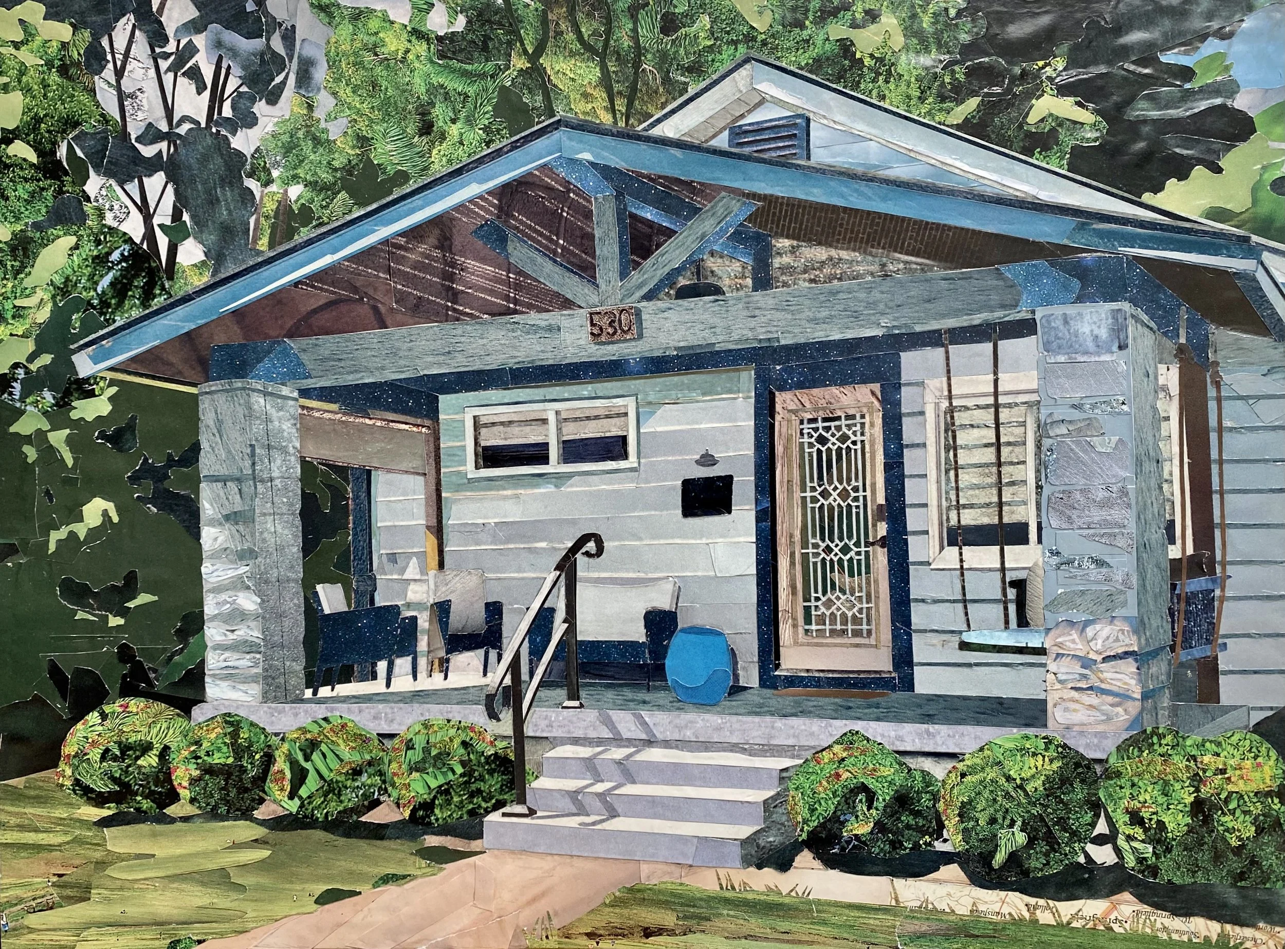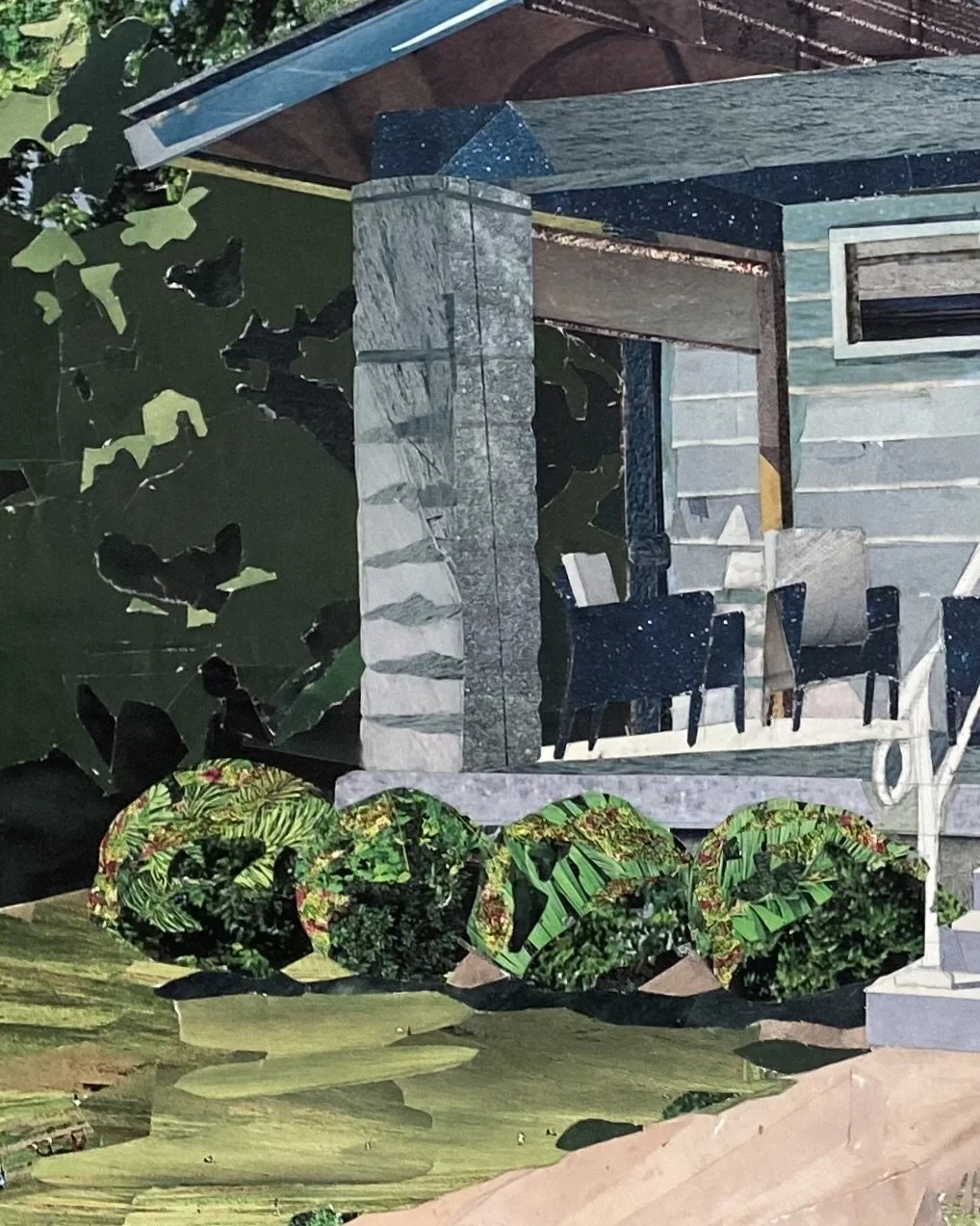 A series of collages depicting windows and suburban scenes that speak to an impersonal American landscape. Without intimate details, all that remains are the architectural elements and the defining moments of light and darkness. The warm light and long shadows add a temporal element, signifying the setting of one stage and the rising of another. The materials give a sense of anonymity; the magazine pages depict an array of places and moments in time – memories that are not my own. The result is a quiet, contemplative look outside into the surrounding framework that feels simultaneously familiar and distant.